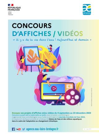 Envoyez vos projets d’affiches ou podcasts jusqu'au 19 décembre 2025. Concours ouvert de la maternelle au lycée dans le bassin Loire-Bretagne. L'agence de l'eau Loire-Bretagne vous invite à célébrer la journée mondiale de l’eau 2026, en explorant de façon sensible et artistique, le thème de l'eau et des milieux aquatiques dans le cadre de l’adaptation au changement climatique.