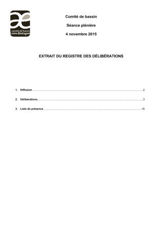 Extrait du registre des délibérations adoptées par le comité de bassin en séance plénière.